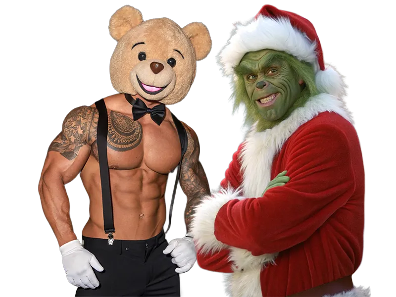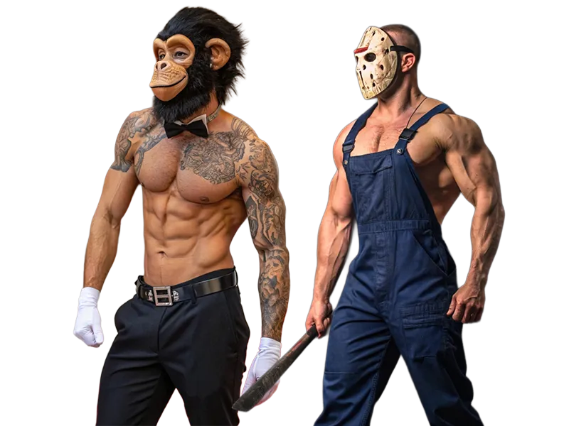 Choose from over 100 outfits—firefighters, police officers, doctors, cowboys, seductive nurses, CEOs, military, construction workers, mariachi, pizza boy, UPS, lawyer, and more.