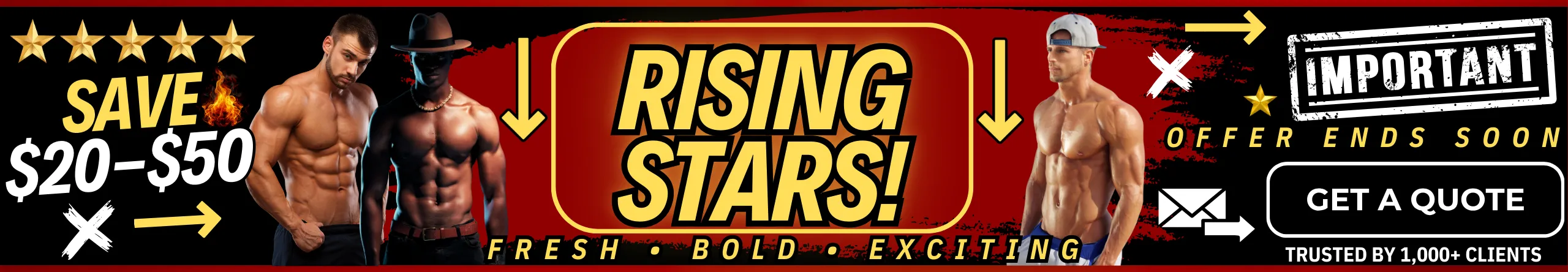 Our top entertainers get reserved fast, especially on weekends. Secure your booking early with Oceanside Male Strippers to lock in your favorite.